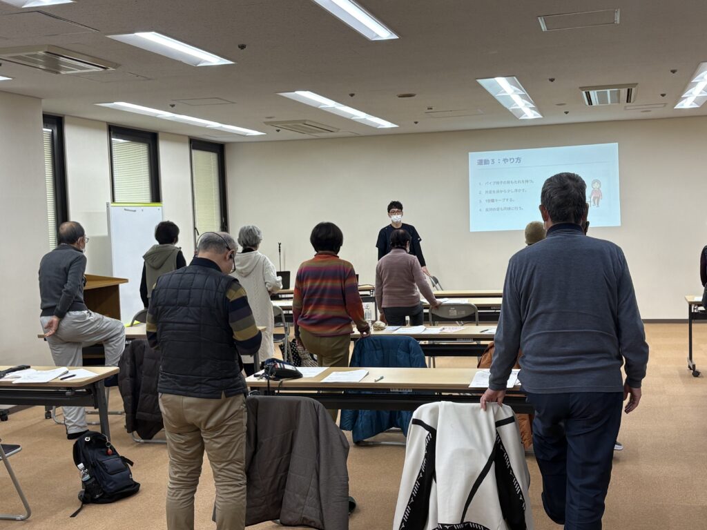 「痛みのメカニズムと予防の体操」と題し、17名の地域の皆様と一緒に「一生動ける体づくり」について学びを深めました。