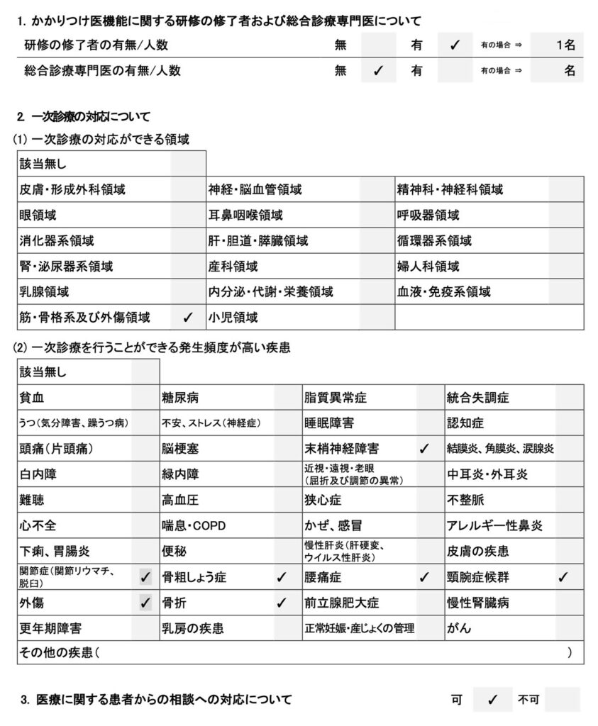 当院は、発生頻度の高い疾患についての診療を行い、日常的な診療において、患者様の生活背景を把握し、適切な診療・保健指導を行い、必要な場合には、地域の医師・医療機関と協力して解決策を提供します。この他、患者さんが適切な医療機関の選択ができるように、当院の有する「かかりつけ医機能」に関する体制を以下のように報告します